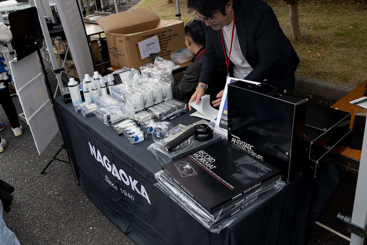 アナログ再生機器ブランドもブースを展開、テクニクスは “SL-1200シリーズ” を展示するほか、ナガオカはレコード保管アイテムを多数展示即売していた。