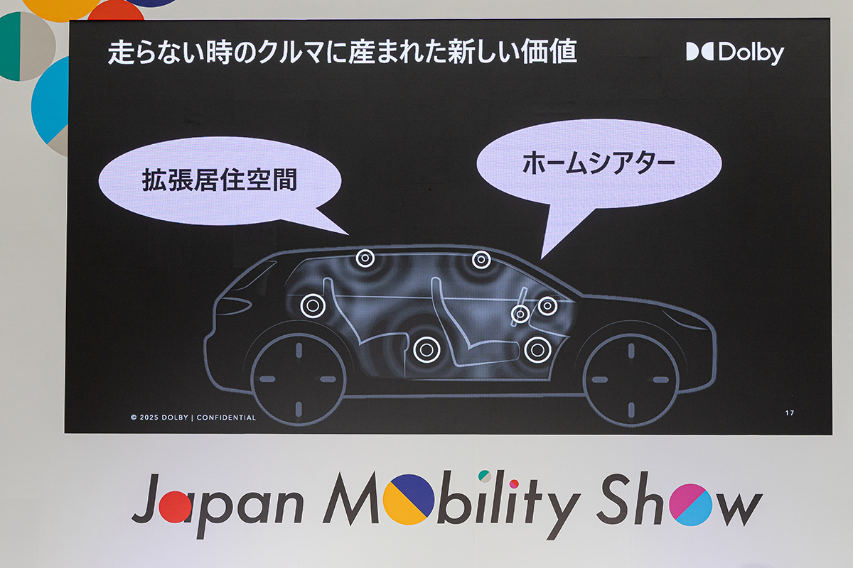 ドルビーラボラトリーズが11月6日、ジャパンモビリティショー2025にて行った「モビリティ×エンタメ―Dolbyが提案する新たな価値」と題したトークステージイベントで、近未来の車内エンターテイメントの全容が見えてきたのでご紹介しよう。