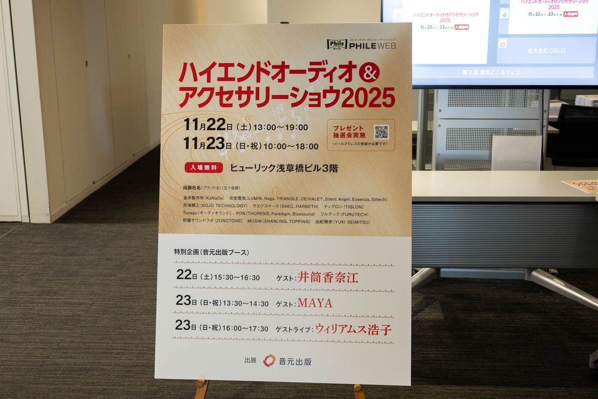 Room1は、ティグロン、金井製作所、フルテックがテーブルブースを出展するほか、音元出版による物販ブースも用意。井筒香奈江さんによる7インチシングル“ブラック&クリア”「SUPER CLEAR AND BLACK VINYL 2-EP SET」も大人気。このイベントが先行発売となり、井筒さんのサインを求める列も途切れなく続いていた。