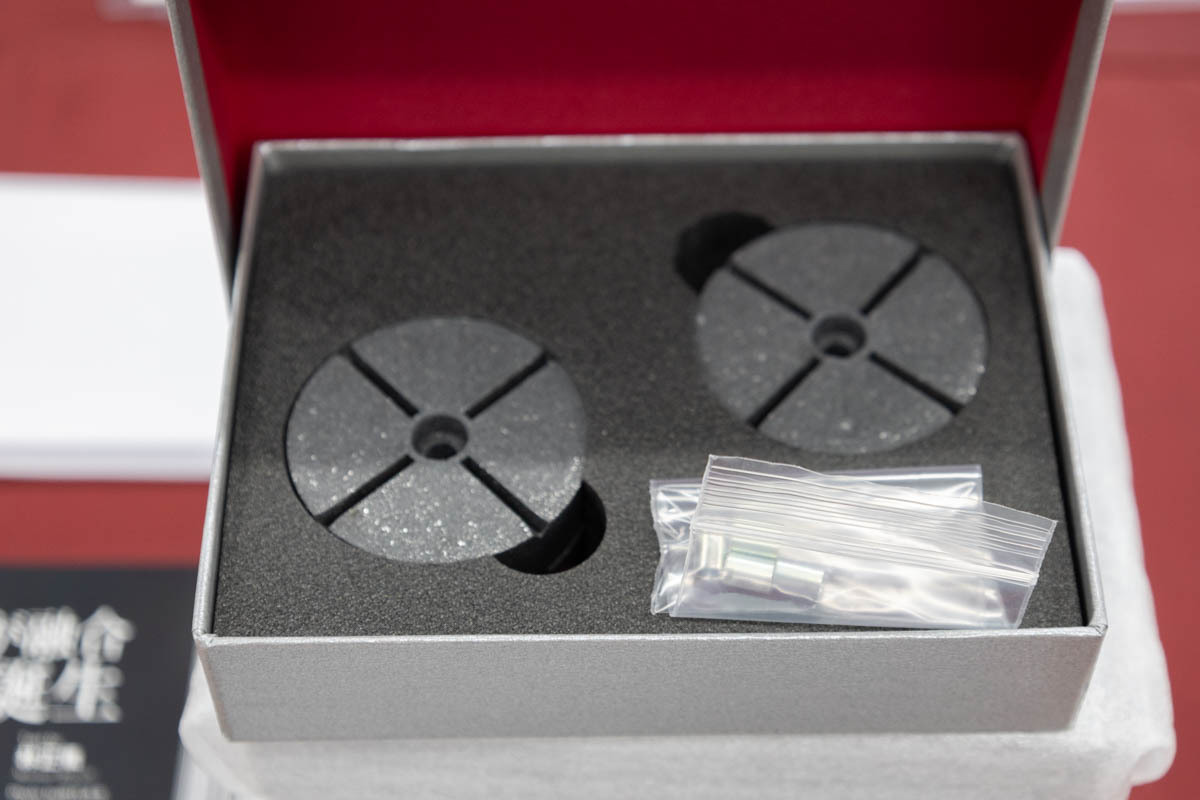 金井製作所は、仮想アースとインシュレーターの「KaNaDeシリーズ」を多数展示。自分で水と土を混ぜて制作できる仮想アースキット、火星の成分を模して作られた「KoNaDeマーズ」など、独自のアイデア製品が魅力。会場限定で「KaNaDe1 0S」というオールマイティモデルを先行発売、スピーカーやアンプなどさまざまな場所で活用できるものとなっている。