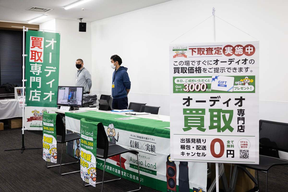 また、昨年に引き続きオーディオの中古買取業者のオーディオランドも出展。その場で買取の相談にも乗ってくれる。オーディオランドはオーディオ専門の買取業者であり、スタッフもオーディオ愛の深い人たちが集まっている。「オーディオファンの方は長年オーディオを大切にしてきた方が多いので、その方々の胸をお借りしながら、ひとつひとつ丁寧にサポートしていきます」と事業部長の花石達生さん。中古の買取によって、新品の市場が活性化することを期待したいと語ってくれた。