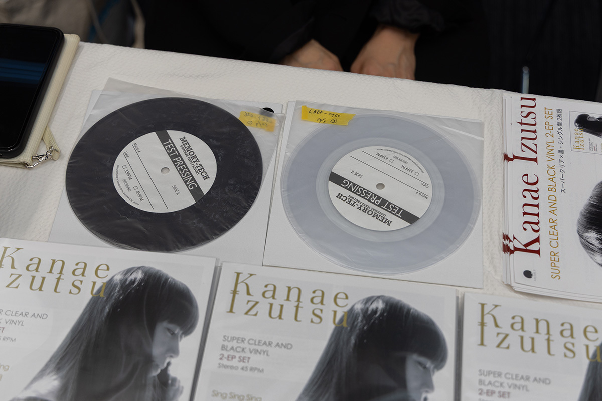 15時30分からは、小原由夫氏による“高音質”シングル盤レコードBLACK/CLEARヴァイナルの聴き比べと題し、オーディオクイーン井筒香奈江さんとカッティングエンジニアの北村勝敏氏をゲストに迎えたイベントを実施。同じ音源で黒盤とスーパークリア盤をセットにした『SUPER CLEAR AND BLACK VINYL 2-EP SET』の聴き比べなどを実施した。