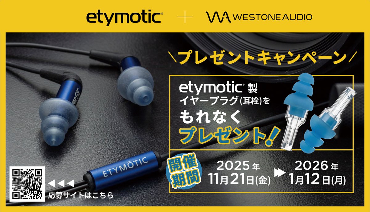 Etymotic/Westone Audio対象商品購入でイヤープラグをもれなくプレゼントするキャンペーン。2026/1/12購入分まで