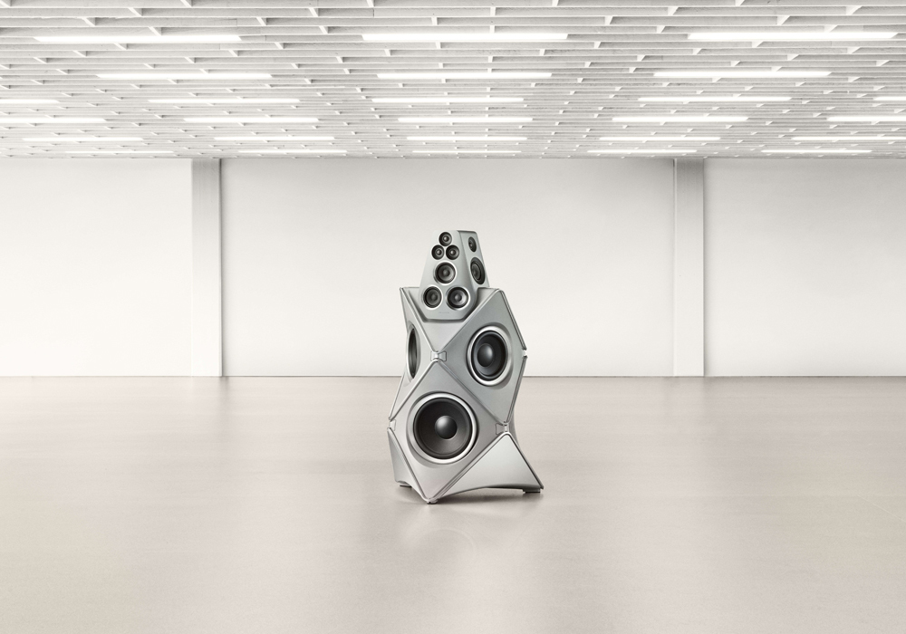 スピーカー全体の質量は1台あたり約137kgにも達するいっぽう、磨き上げたベースパネルを装着することで視覚的な浮遊感を演出。建築的な存在感を強化したとのこと。マット/光沢という2種類の表面仕上げのコントラストにより、ディテールの差異も強調しているそうだ。