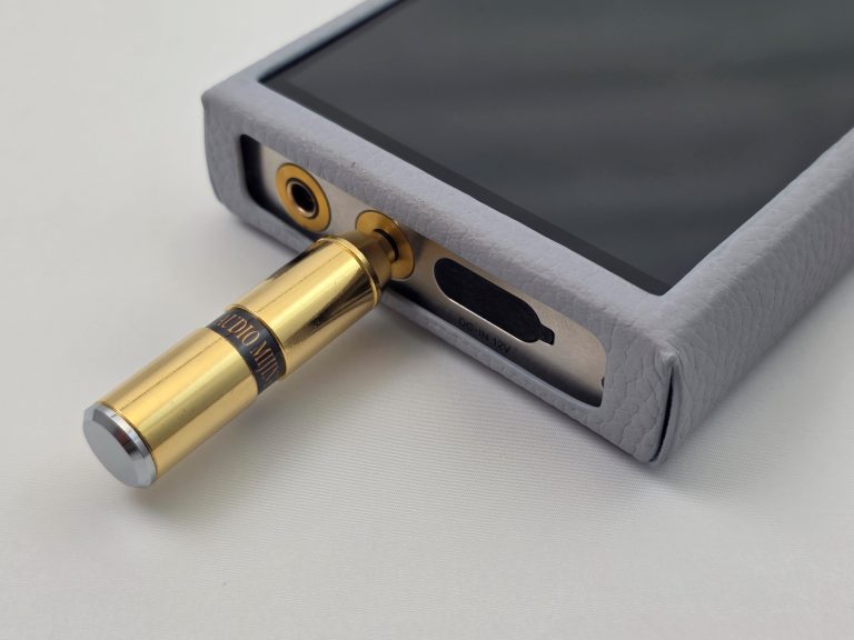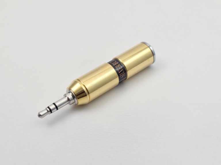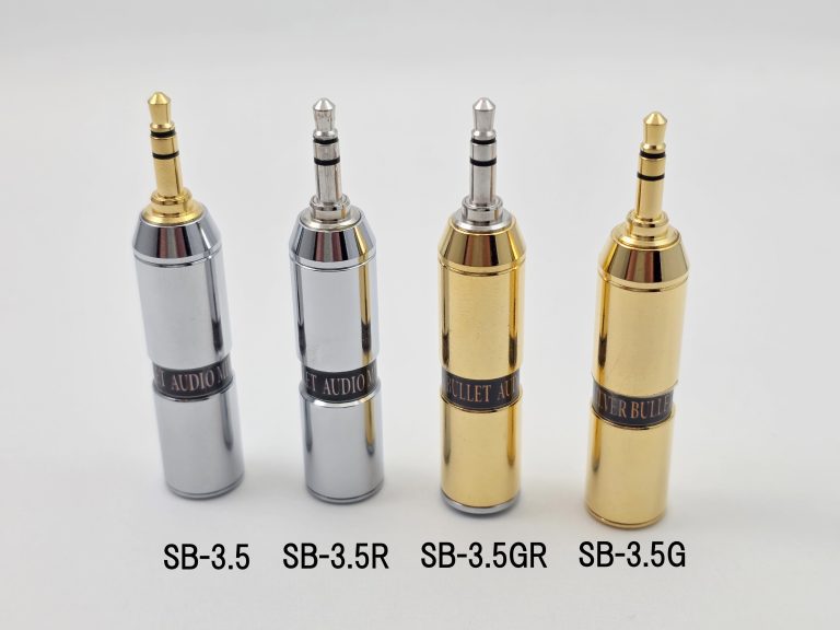 3.5mm挿し込み部分の電極にはSB-3.5Rと同じロジウムメッキを使用。本体ハウジングはSB-3.5G と同じ金メッキ仕上げ。内部の充填物は、“SILVER BULLET” シリーズと同様に純銀を主体としつつ、SB-3.5R とSB-3.5Gとをミックスさせたものとしている。