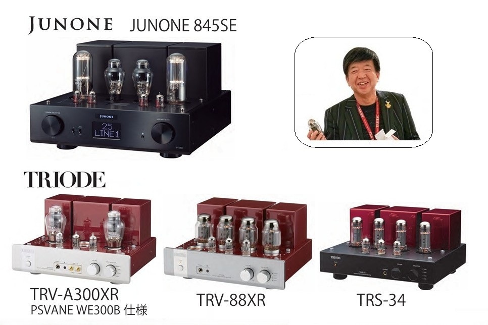 2025年5月に発売されたトライオードの最新アンプJUNONE「JUNONE 845SE」をメインに、TRIODE「TRV-A300XR(PSVANE WE300B仕様)」、「TRV-88XR」、「TRS-34」とフラッグシップからエントリーに至る真空管アンプのベストセラーモデルがラインナップ。じっくりと比較試聴ができる貴重な時間を提供する。