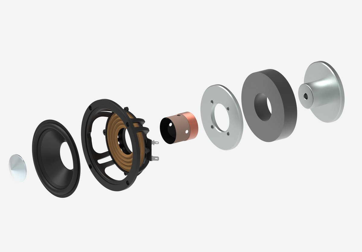 ウーファーは90mm、アルミニウム合金・コーン振動板を搭載。大型フェライト・マグネットと30mmの大口径ボイスコイルの組み合わせによって、駆動させる仕様を導入した。併せて、ロングエクスカーション型を採用する。