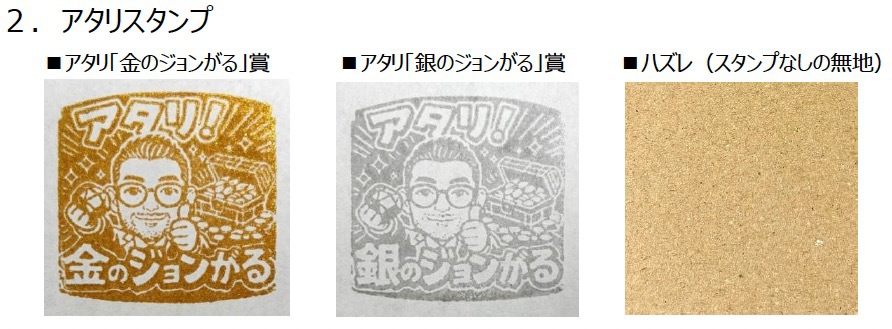 ・<アタリ:金のジョンがる>は賞品対象モデル(型式)から2種。(組み合わせ自由)