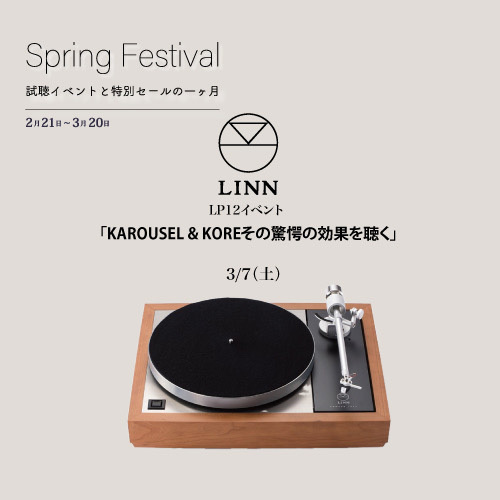 秋葉原のオーディオショップ、ダイナミックオーディオが3月いっぱい開催する一大オーディオイベント「スプリングフェスティバル」。この期間中に、LINN(リン)のアナログプレーヤー「LP12」を題材にした三部作のイベントが開催される。