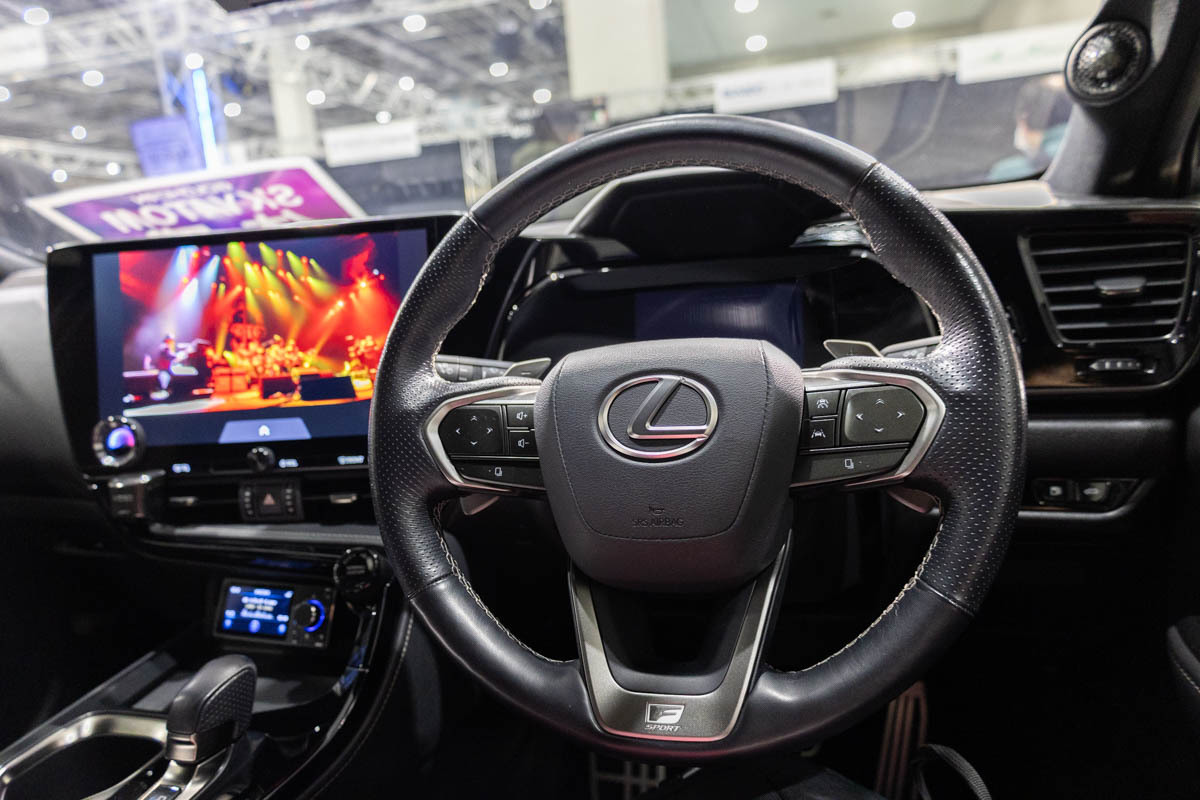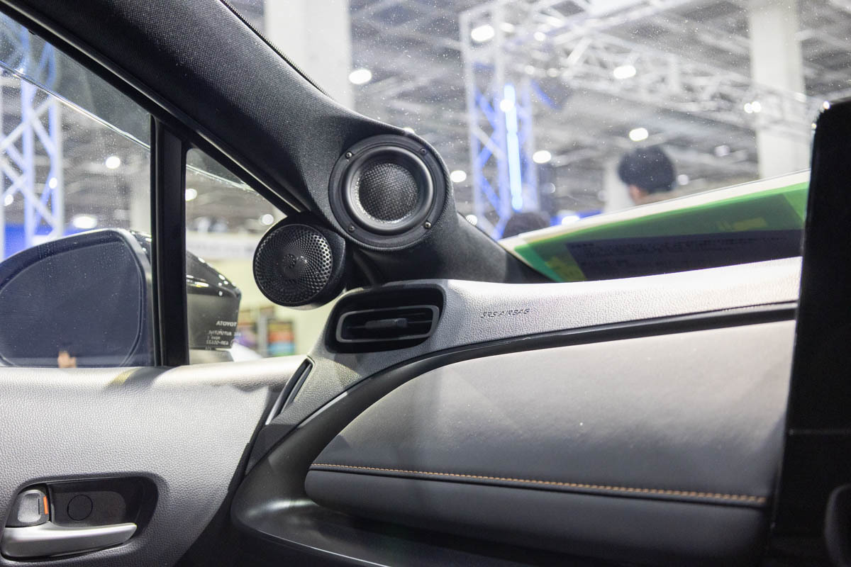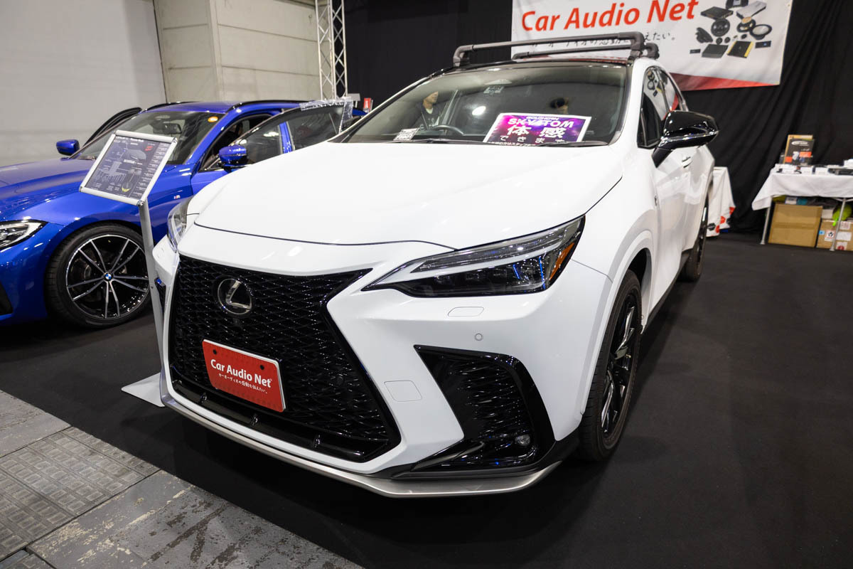 イース・コーポレーションは、同社が取り扱うGOLDHORNブランドが展開する独自のサラウンドシステム「SKYATOM」を搭載したレクサスNXを展示。DAC内蔵DSPアンプ「DSPA 1616 ULTEA」の“シアターモード”を活用することで、まさに映画館のような包み込まれる立体的な音環境をアピールする。