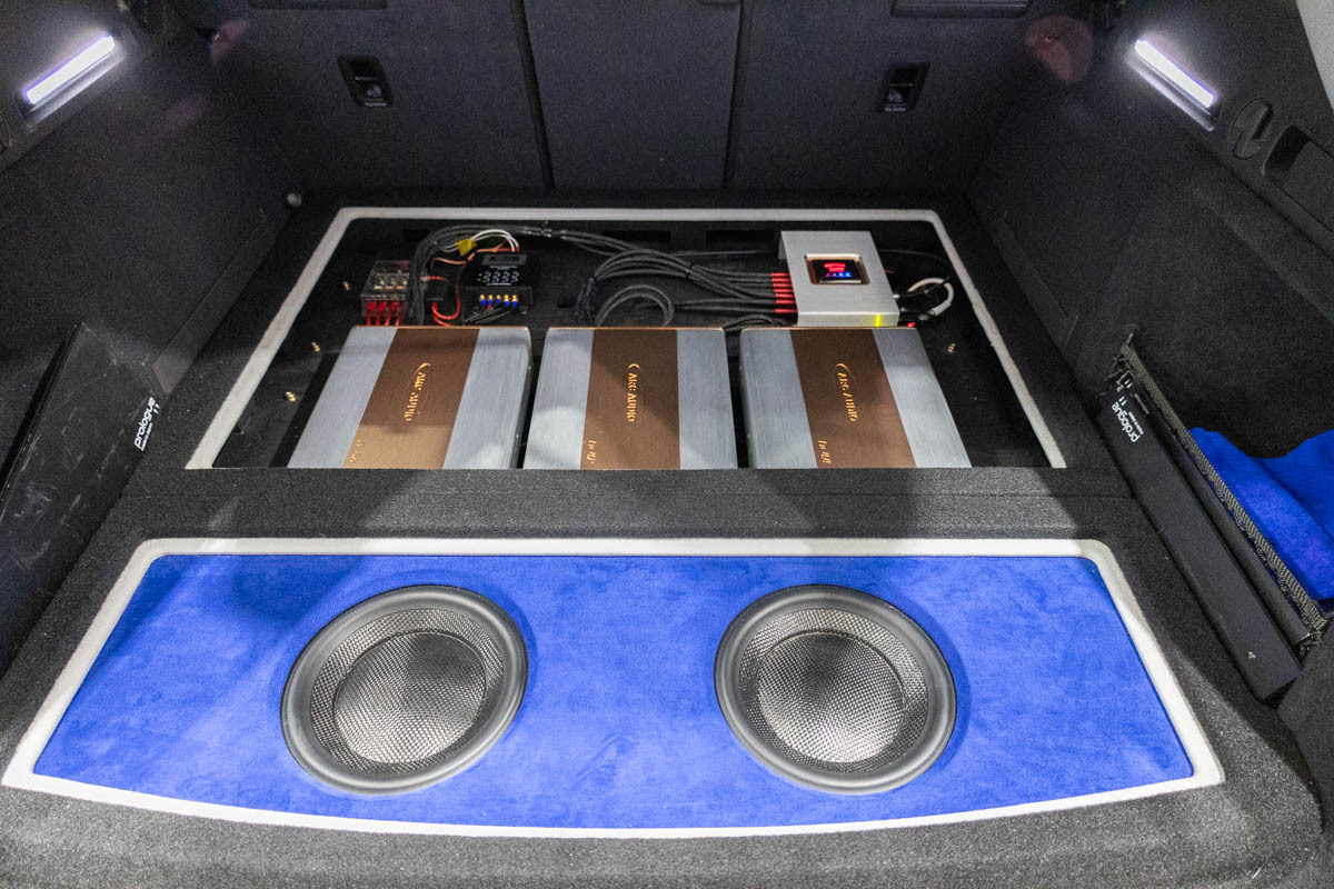 モレルの「ELATE CARBON」スピーカーをメインに、ラゲッジスペースにアークオーディオのパワーアンプ「Cu4.4-Competition」とRESOLUTのDSP「M-DSP」を配備。サブウーファーもモレルで、こちらにはアークオーディオの「NIGHTHAWK」を組み合わせる。送り出しはFIIOの「M27」である。