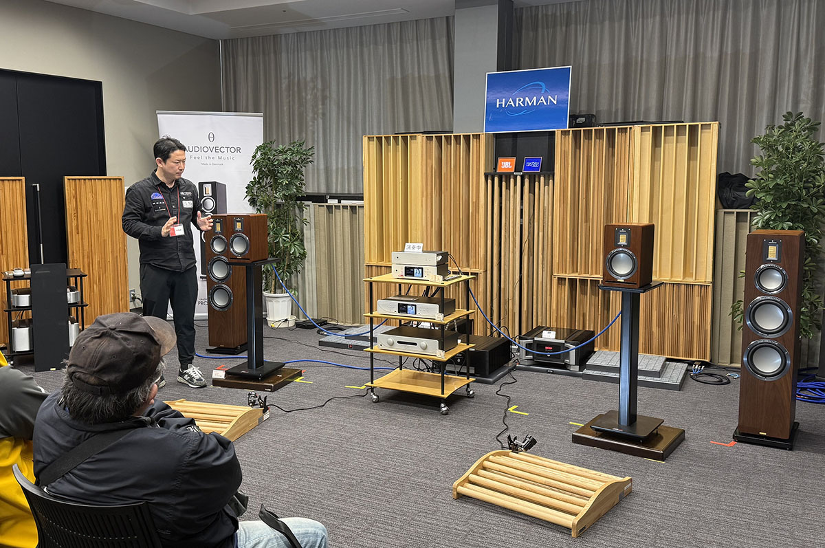 また、両日にわたりオーディオ評論家諸氏による試聴イベントも実施。14日の14時30分からは土方久明氏が登壇。「R3 Meta」を核に、人気のサブウーファー「KC92」と「KC62」の比較試聴を行い、多くの来場者が集まった。