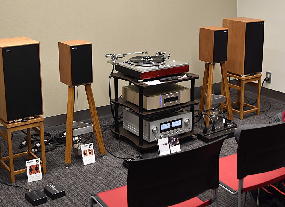 サエクコマースはHARBETHのスピーカーシステム、コンパクトな「P3ESR XD2」と200mmミッドウーファー搭載の「C7ES-3 XD2」を軸に、サエクブランドで人気のケーブルや仮想アースの聴き比べなどを実施。