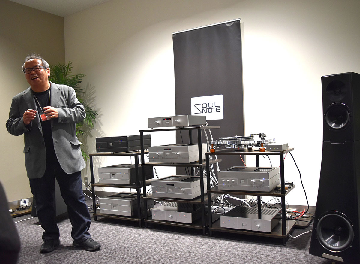 SOULNOTEは終日にわたり、チーフデザイナーの加藤秀樹氏による講演を実施。毎回満席が続くなかで、同社の「1シリーズ」「2シリーズ」のver.2を中心にアナログとデジタルの両方の魅力を様々な音楽でデモンストレーションした。
