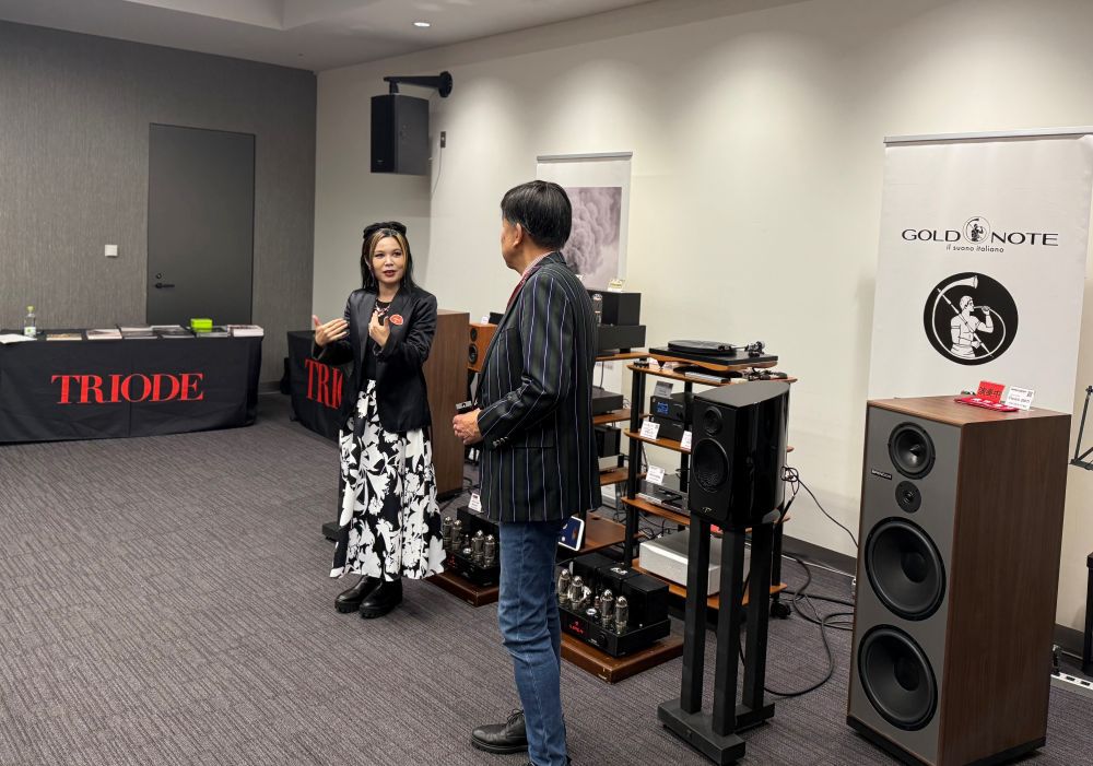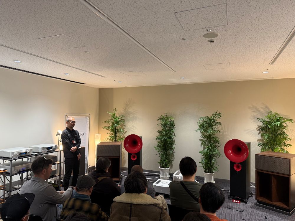 さらに「オーディオ銘機賞2024」にて金賞を受賞した、同じくEvolutionシリーズのフロアスタンド型モデル「TAD-GE1」を、同社のプリアンプ「TAD-C1000」とパワーアンプ「TAD-M2500TX」で駆動。「TAD-M2500TX」はバイアンプで使用するというシステムだった。なお、土曜日には小原由夫氏、日曜日には土方久明氏の講演も行われ、盛況を博したとのこと。