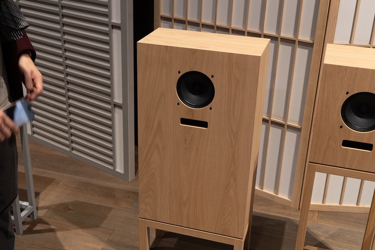 大きさの順に「Sanjo」「Rokujo」「Nurikabe」と名付けられた3種類のスピーカーシステムは、すべて磁気回路にアルニコマグネットを用いたフォステクス製フルレンジユニットが奢られている。キュービックなエンクロージュアはバーチ合板製で、ホワイトオークの突板で仕上げられている。販売価格は「Sanjo」が44万円、「Rokujo」が77万円、「Nurikabe」が165万円程度を予定している。