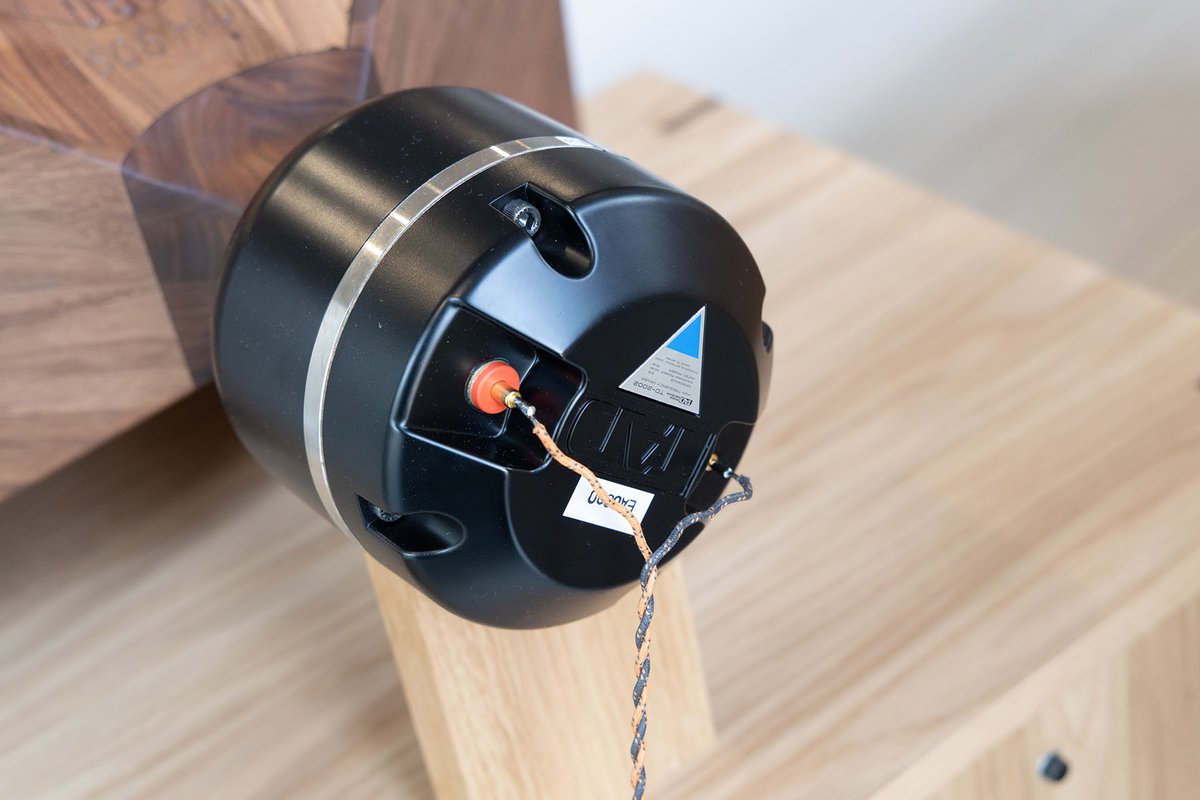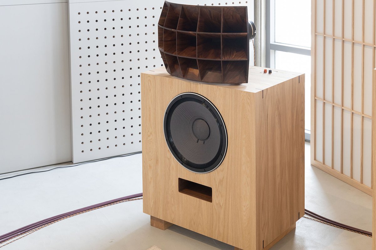 注目は木製のマルチセルラーホーンで、デヴォン氏の3Dデータをもとに、カリモクの3次元加工技術により制作。木目の方向に至るまで配慮されたそれは、従来の鋳鉄製ホーンとは異なる柔らかな響きが印象的。こちらは販売の予定は無いとのことだが、要望があれば受注してくれるかもしれない。