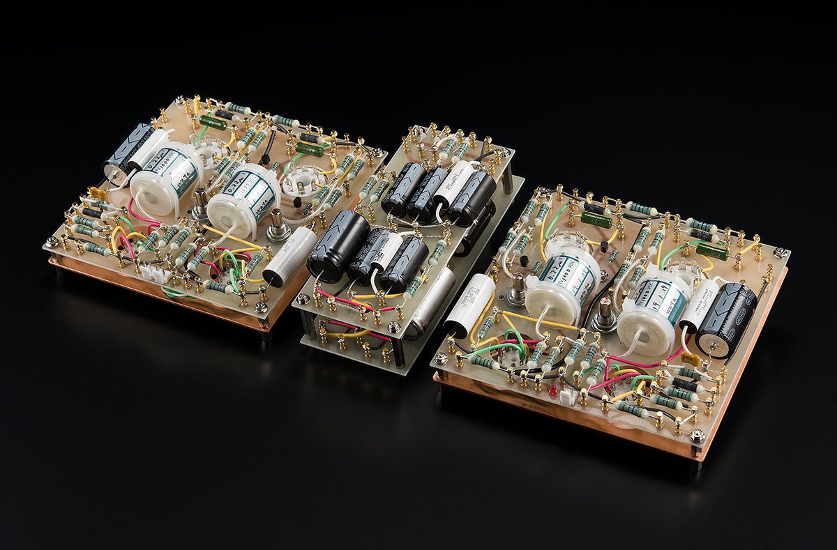 5極管EL34のダイナミックかつ繊細な音調を高い次元で両立するべく、新たに開発したプッシュプル回路を採用。「現代スピーカーも視野に入れたドライブ能力を持つ真空管パワーアンプ」を目指し、回路各所の定数や電流値の最適化を図ったとしている。