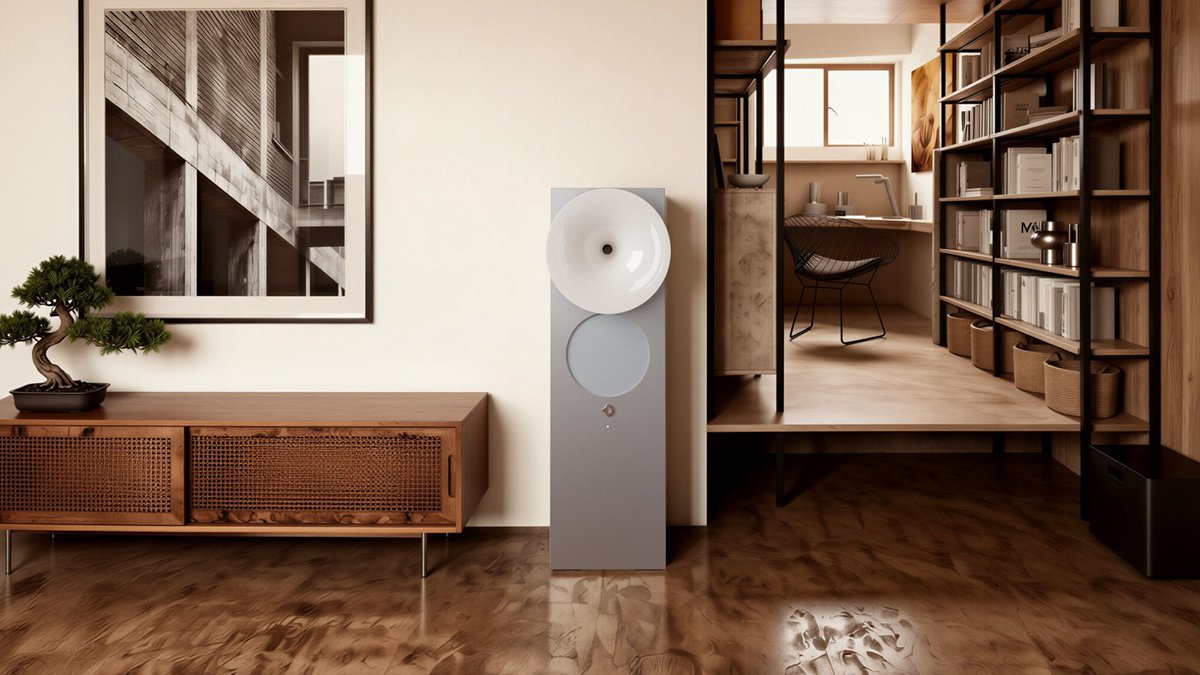 筐体はスリムなフロア型で、設置面積を抑えつつ低域の量感とスケール感を狙った構成を採用。キャビネット素材はMDF+アルミニウムを採用する。