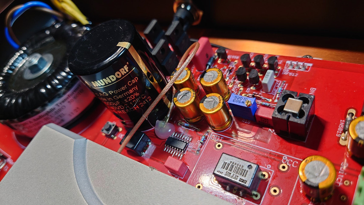 筐体はCNC加工の6061アルミニウム製で、内部にも温度管理とEMI対策のためのCNCヒートシンクコアモジュールを内蔵。日本専用モデルとしてPSEマークを取得し、100V専用のプレミアムトロイダルトランスや特別なレッドPCB基板を採用している。