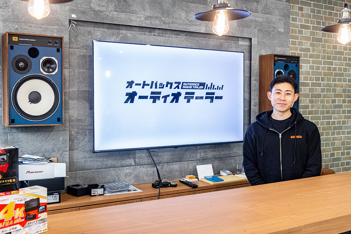 若いフレッシュなエネルギーに驚きながら、まずは森店長に「オーディオテーラー」という店名について尋ねた。森店長は、「洋服には、その人に合わせて設えるテーラーメイドがありますよね。人それぞれに合わせたカーオーディオを提案したいと思い、この名前にしました」と説明する。