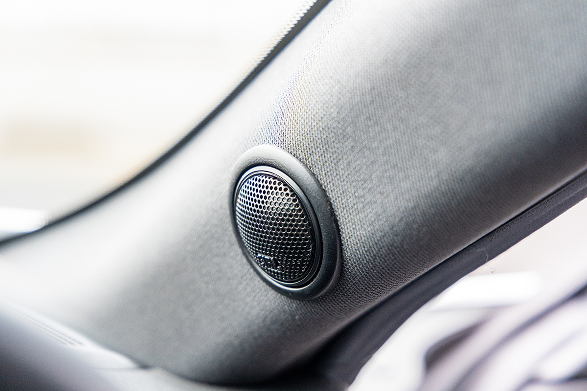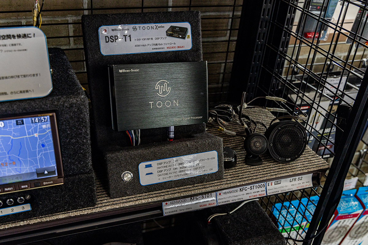 オススメの商品はスピーカー交換かと思いきや「スピーカーはそのままで、DSPアンプを導入されることをオススメします」という。「これが結構変わるんですよ。私も新入社員研修でDSPのオンオフを体験してから、カーオーディオに目覚めたんですよ」。