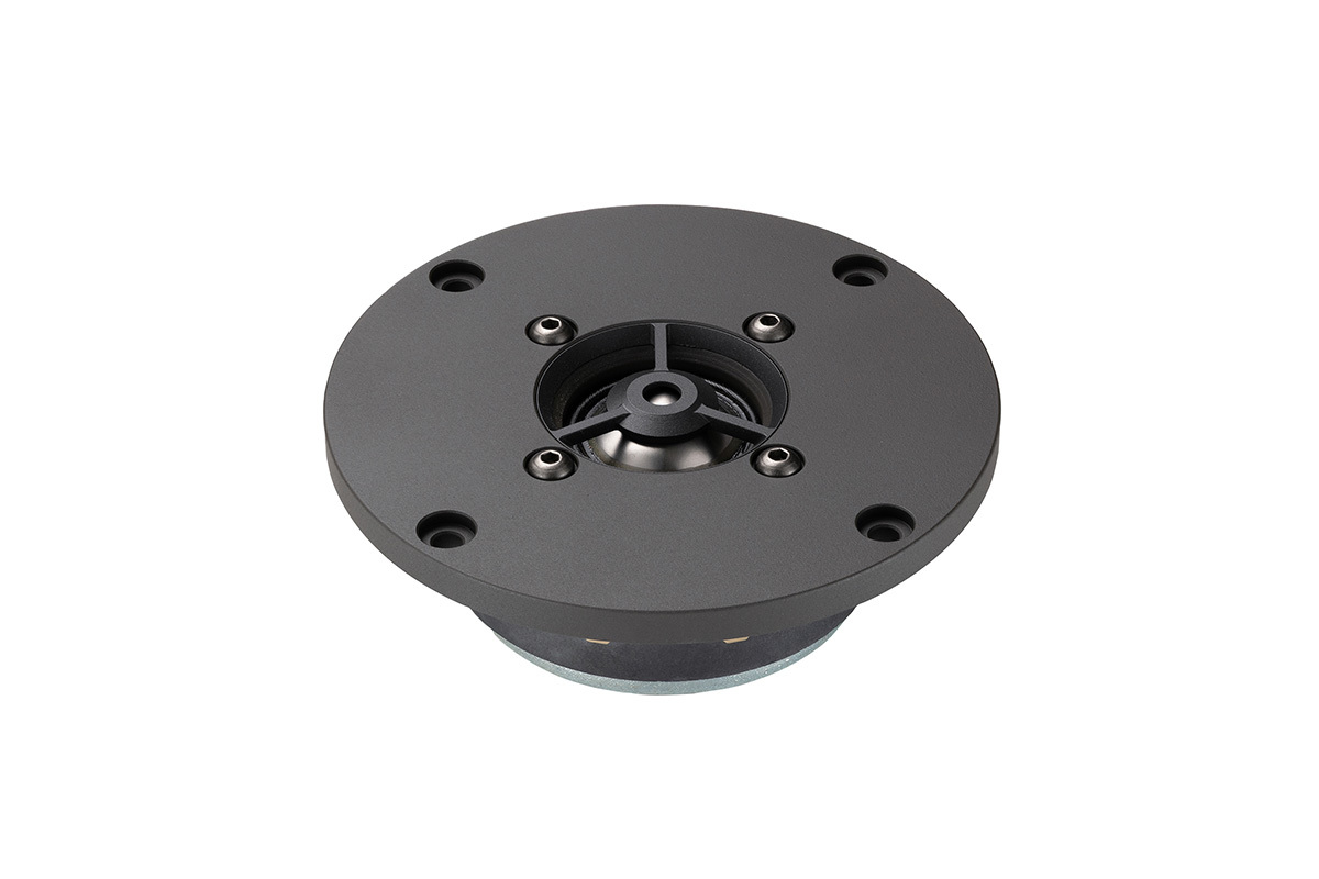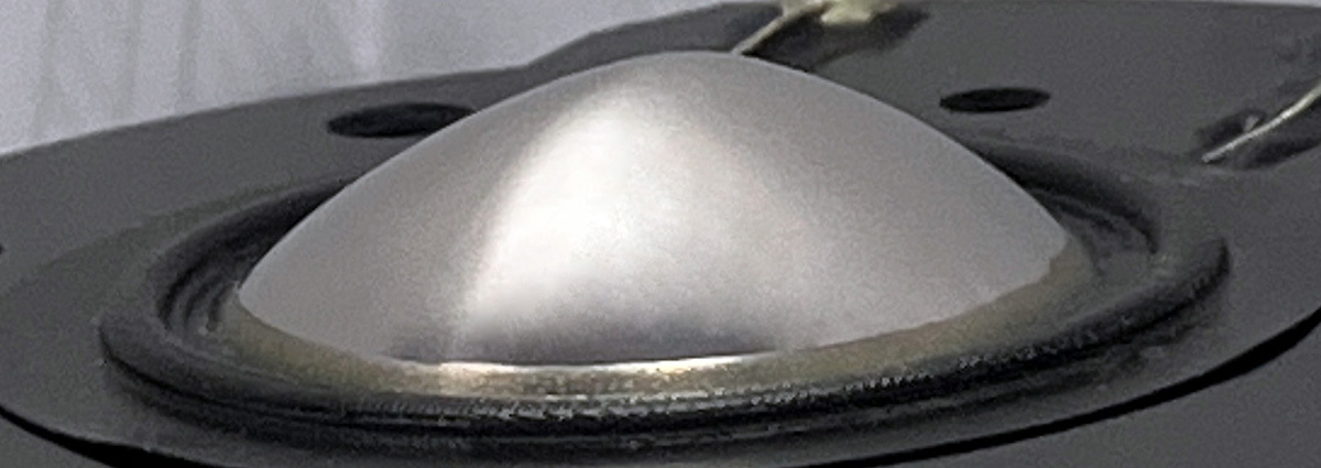 新開発した1インチのリッジドーム形状で成形したチタン振動板は、ボイスコイルからドームの頂点までの距離を一定にしないことで共振を分散し、金属振動板ならではの高速レスポンスを実現しながら、カラーレーションの原因となる固有共振も分散するという。