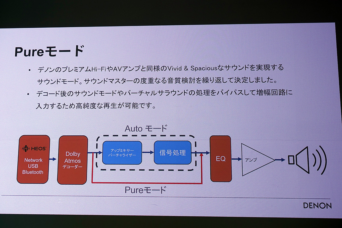 同社は、2014年に世界初の民生機におけるDolby Atmos対応機を出したのがデノンであると言及。そこからさらに知見を深めており、培われたノウハウが今回の新製品にも活かされていると自信を示した。