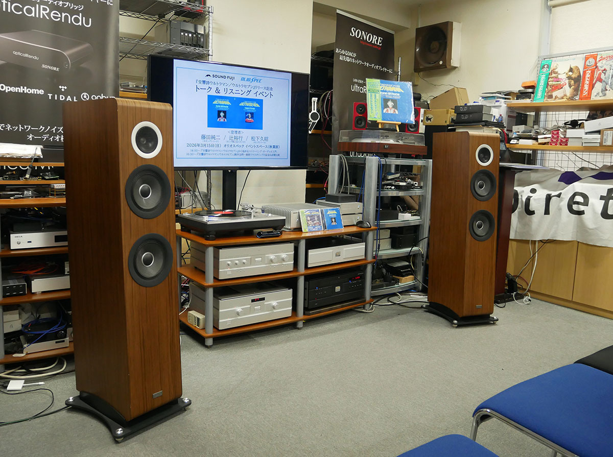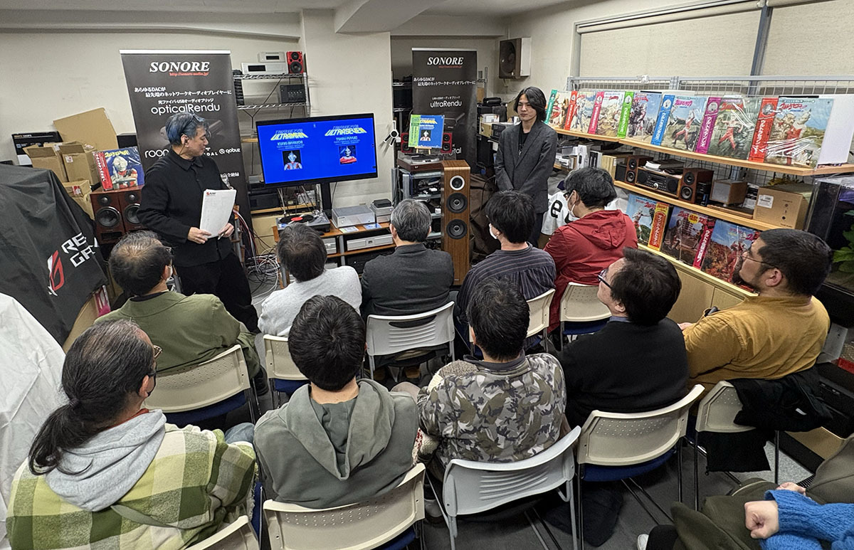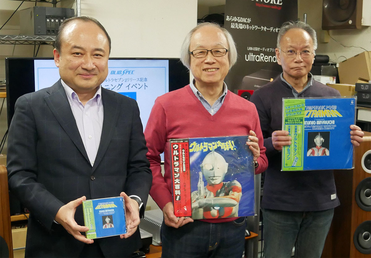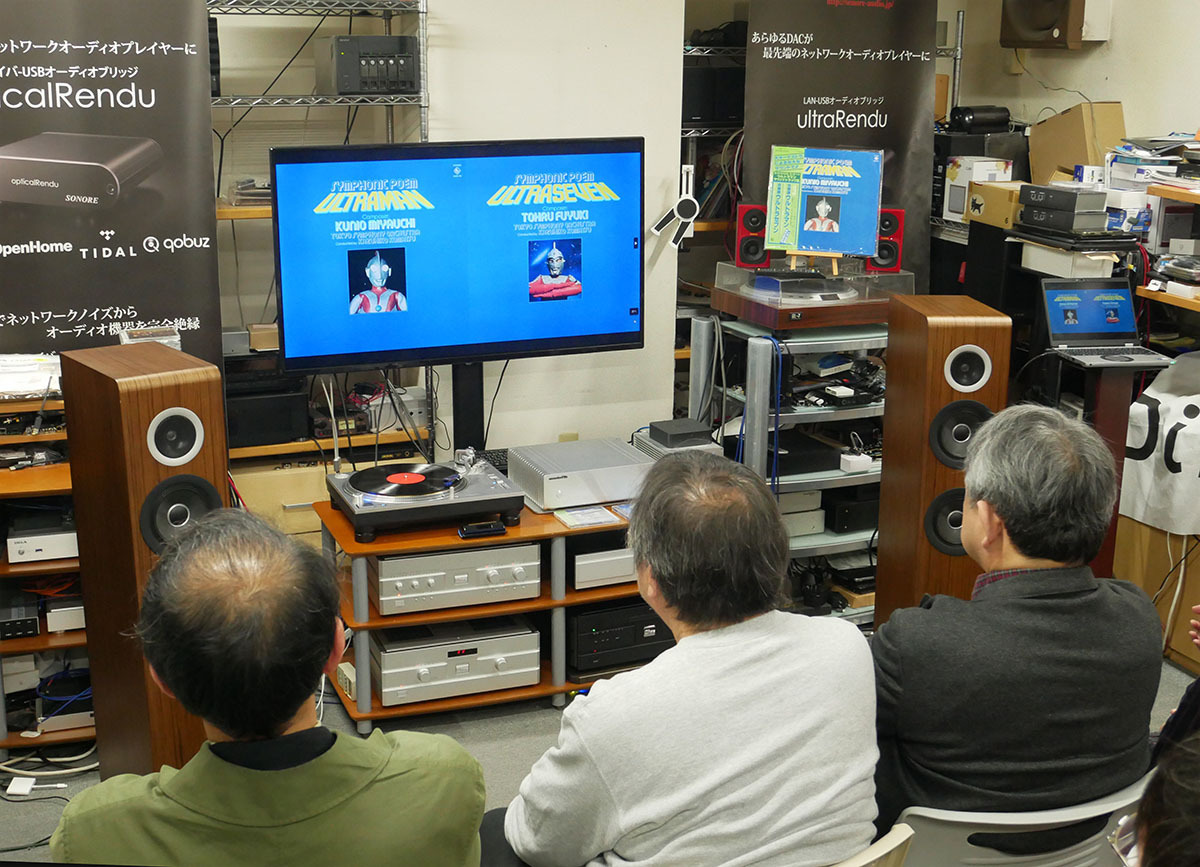 同社では一昨年の秋に「『伊福部昭SF特撮映画音楽の夕べ』実況録音盤」をLPとSACDで聴く試聴会を開催しているが、その企画が特撮ファンに限らずオーディオ愛好家にも評判だったそうで、今回はオーディオマニアではない方にも、国産ハイエンドオーディオ機器で「交響詩ウルトラマン/ウルトラセブン」がどんな風に楽しめるかを知ってもらいたいという思いで企画を進めたとのことだ。