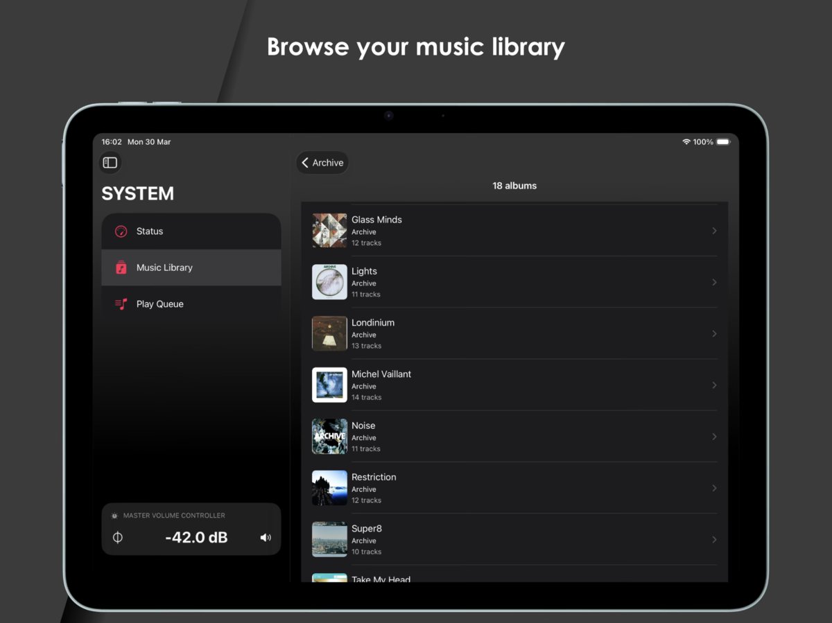 「CH Controller」は、入力切替やボリューム調整、ミュートといった基本操作に加え、再生操作や各コンポーネントの詳細設定まで、システム全体をリアルタイムでコントロール可能なアプリ。
