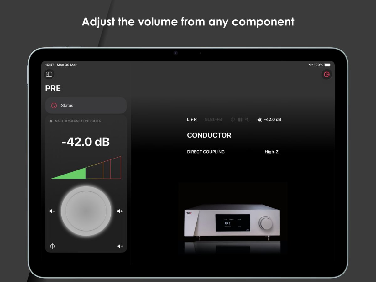 本アプリは、接続機器の状態をリアルタイムで表示しながら操作できるほか、ボリューム特性や入力設定、ゲイン構成などの詳細調整にも対応。日常操作からシステム構築まで一体的に管理できる。