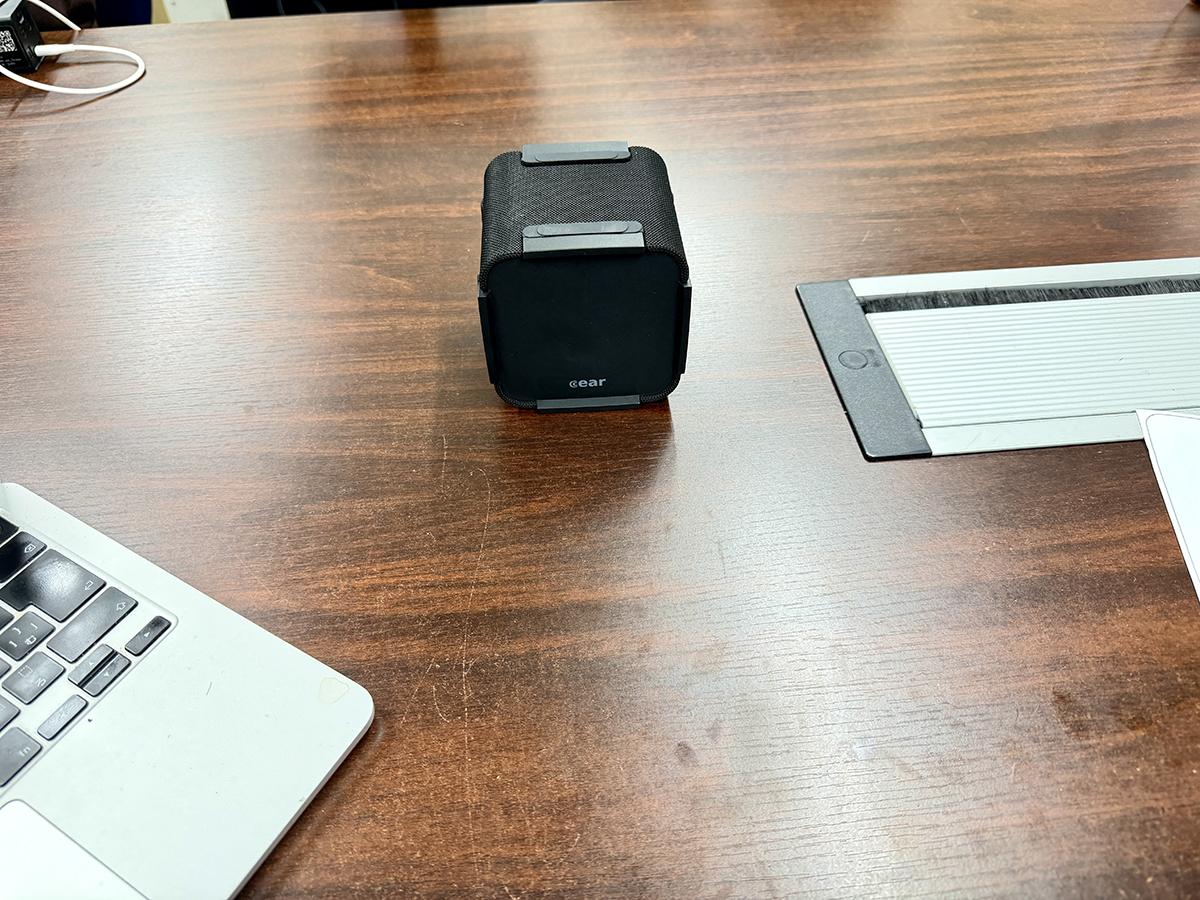 pavéは片手で持てるような小型の立方体の形をしたワイヤレススピーカーだ。最小限のミニマルデザインだが、このシンプルなスピーカーが立体音響を可能とする秘密は、内部に2個反対向きに搭載されたスピーカーと、Cear社独自の空間音響技術「Cear Field」にある。