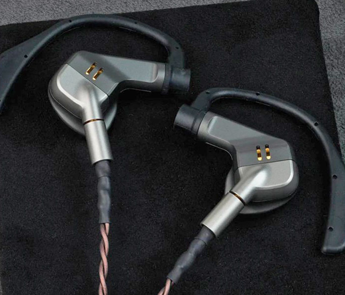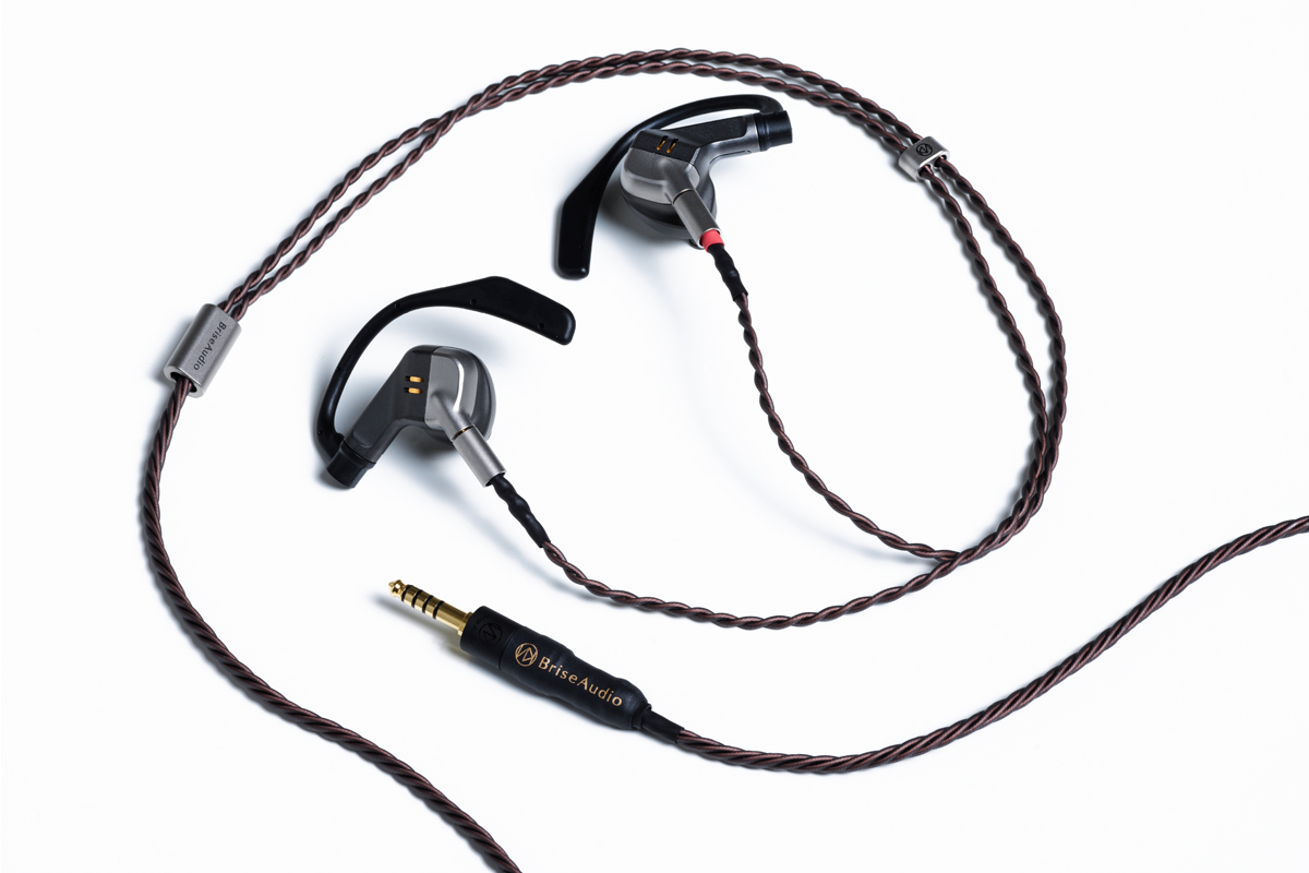 64チタン筐体の表面にはPVDコーティングを施工。傷付きを防ぎつつ、肌なじみの良いサラッとした質感に仕上げた。耳掛け用のステンレスワイヤー入りTPE製イヤーハンガーも備え、ケーブルの重量や引っ張りによる筐体の回転ズレを防止する。イヤーハンガーの曲がりや角度は手で調節が可能。