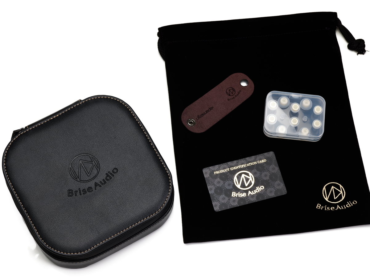 ほかアクセサリーとして、本革製キャリングケース、AZLA「SednaEarfit Max」イヤーピース6サイズ、Ultra Suede製ケーブルクリップ、ベロア巾着袋などを同梱する。