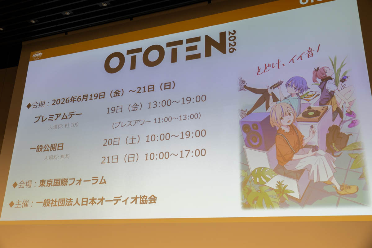 一般社団法人 日本オーディオ協会は、6月19日(金)から21日(日)までの3日間、東京国際フォーラムにて「OTOTEN2026」を開催する。