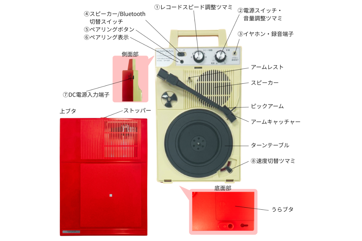 外観や基本操作は当時の雰囲気を継承し、レコードスピード調整ツマミや音量一体型の電源スイッチ、壁掛け再生といった特徴も備える。レコード再生の手軽さとレトロなデザイン性を両立し、往年のユーザーだけでなく若年層にも訴求するモデルとしている。