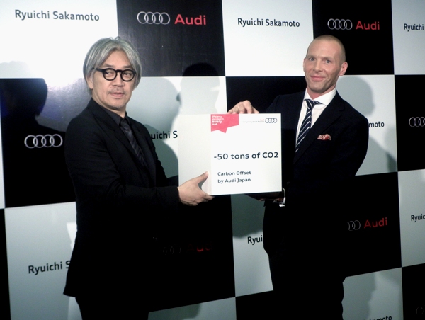 坂本龍一氏と共に、会見を行ったアウディ ジャパンのドミニク・ベッシュ社長(右)