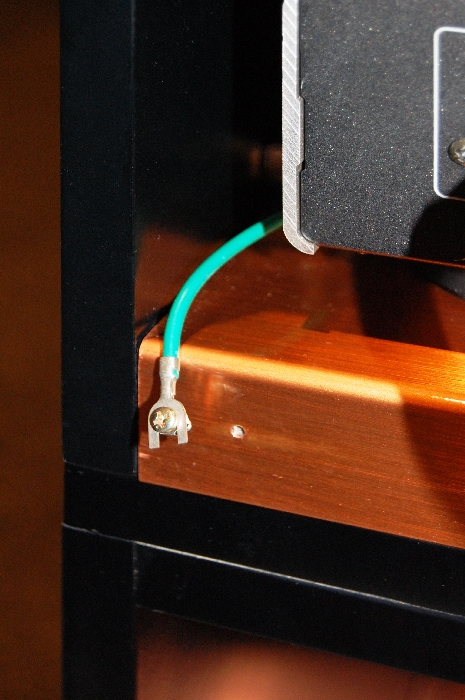 アース用のネジ穴を生かした、隠し技のシャーシアースを試す。銅板全体を仮想の大地アースに見立てた効果は、さらに一歩、理想のホログラフィックサウンドに近づけてくれるもの