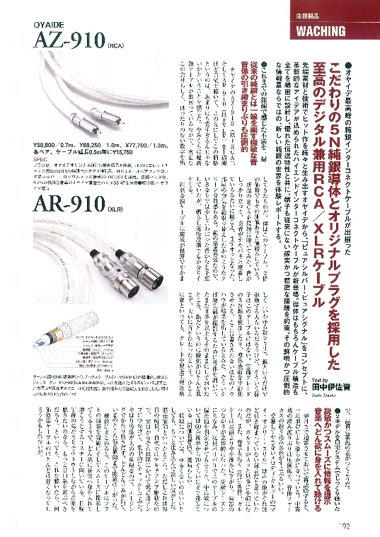 オヤイデ最高峰の5N純銀インターコネクトケーブルをAA140号でレポート