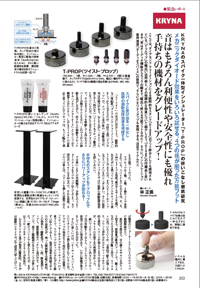 - KRYNA、インシュレーターシリーズにC-PROP(シープロップ)が新登場 2009/01/09