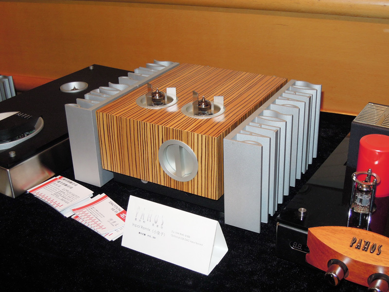 イタリア、パトス社の管球式プリメインアンプでUSB-DACを内蔵している。ヒートシンクにPATHOSの文字がデザインされている