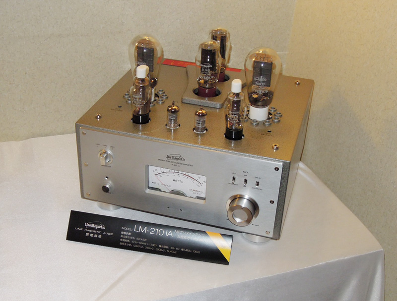 ウエスタン・エレクトリック社の復刻製品を手掛けるLine Magnetic社のA級プリメインアンプ「LM-210IA」。12AX7、310A、300B、5U4Gの真空管を使用