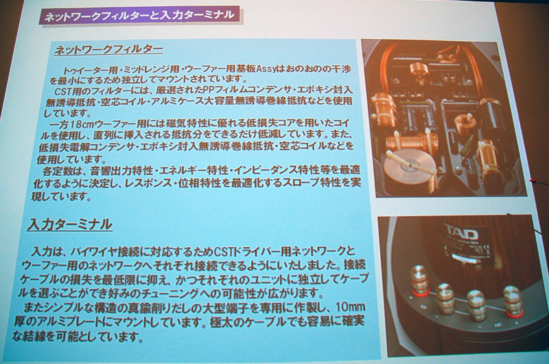 ネットワーク内のトゥイーター/ミッドレンジ/ウーファー用基板は干渉を避けるため独立してマウントされているという