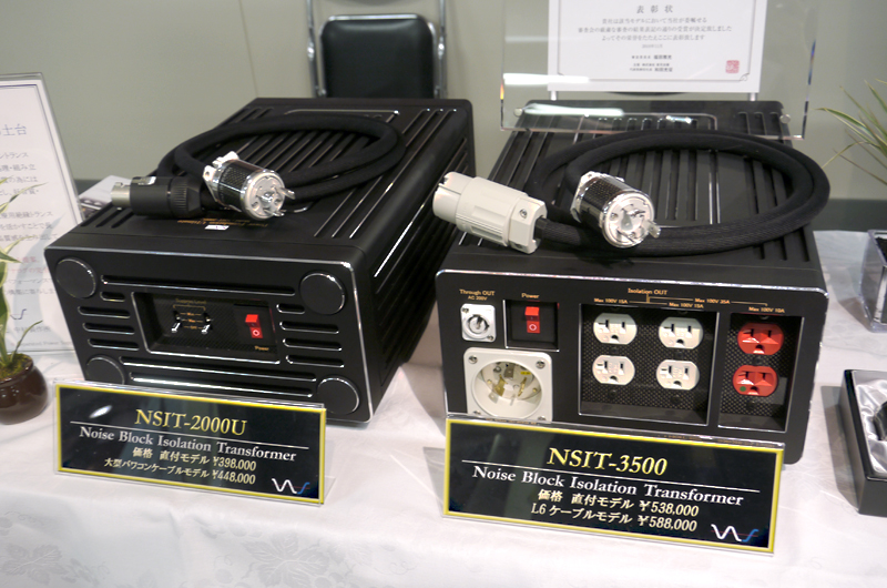 同社アイソレーショントランスの最高峰モデルの「NSIT-3500」(左)と、2000VA仕様の「NSIT-2000U」(右)