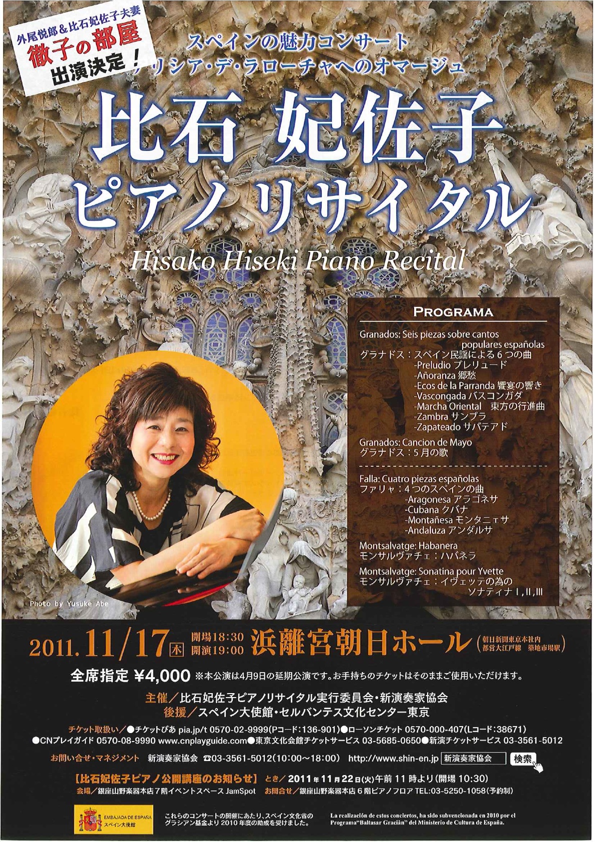 - 『比石妃佐子サグラダ・ファミリア大聖堂コンサート1995』、CDとスタジオマスター配信で登場 2011/11/02