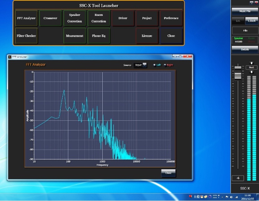 再生ソースの周波数特性をリアルタイム表示できる、FFT ANALYZER機能
