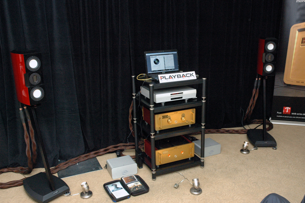 日本でのお馴染みのブランドも多数ブースを出展。写真はスイスのハイエンドブランドdarTZeelとPLAYBACK DESIGNSのブース