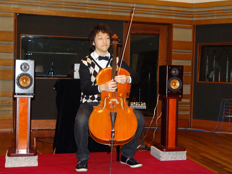チェロの生演奏とウッドコーンの共演
