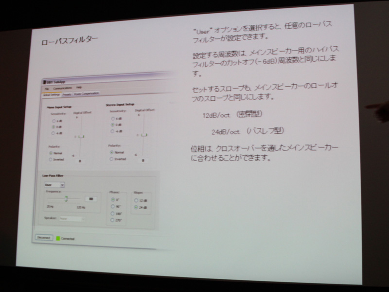 位相をクロスオーバーを通したメインスピーカーに合わせることができる