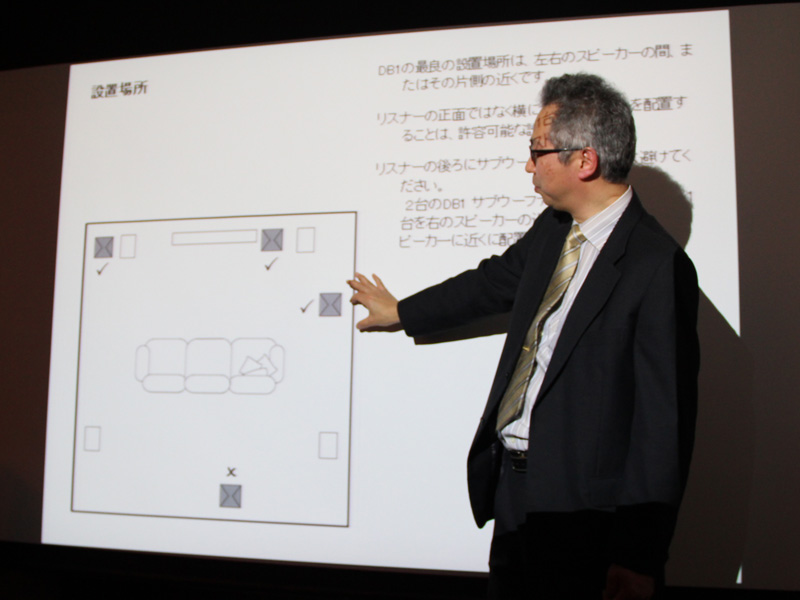 「左右スピーカーの間、または近くが理想の設置場所」と解説する澤田氏
